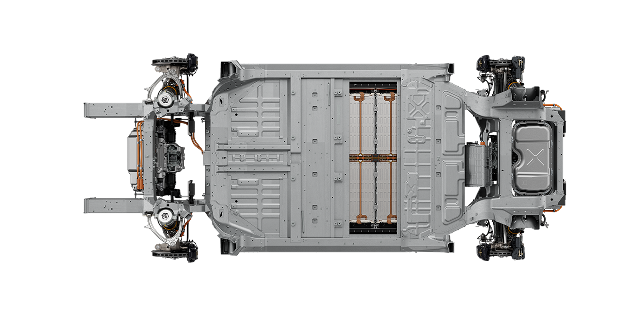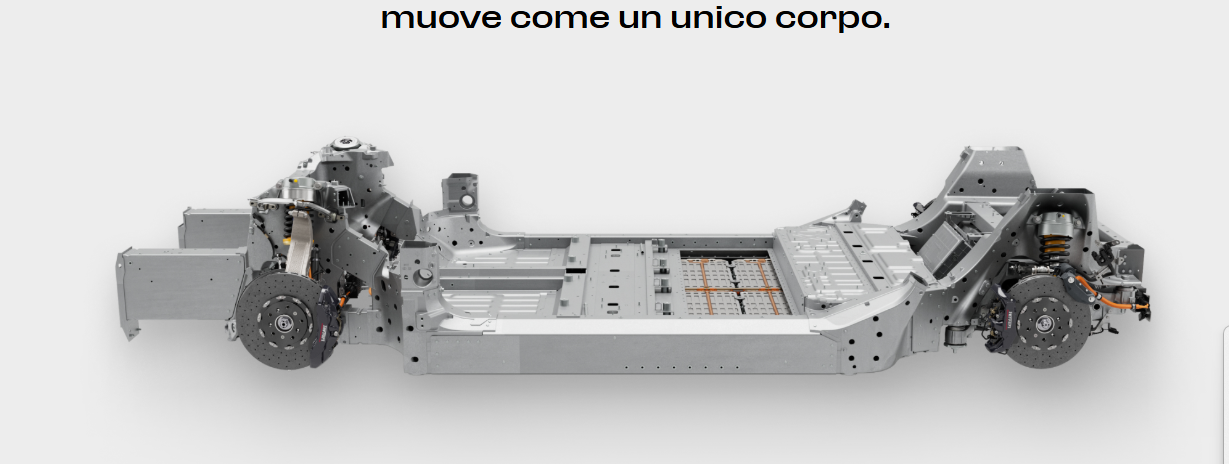 Il telaio della prima Ferrari elettrica mostrato durante la presentazione – Credit: Ferrari