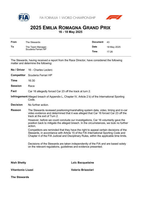 Il documento FIA che avrebbe ‘inchiodato’ Leclerc