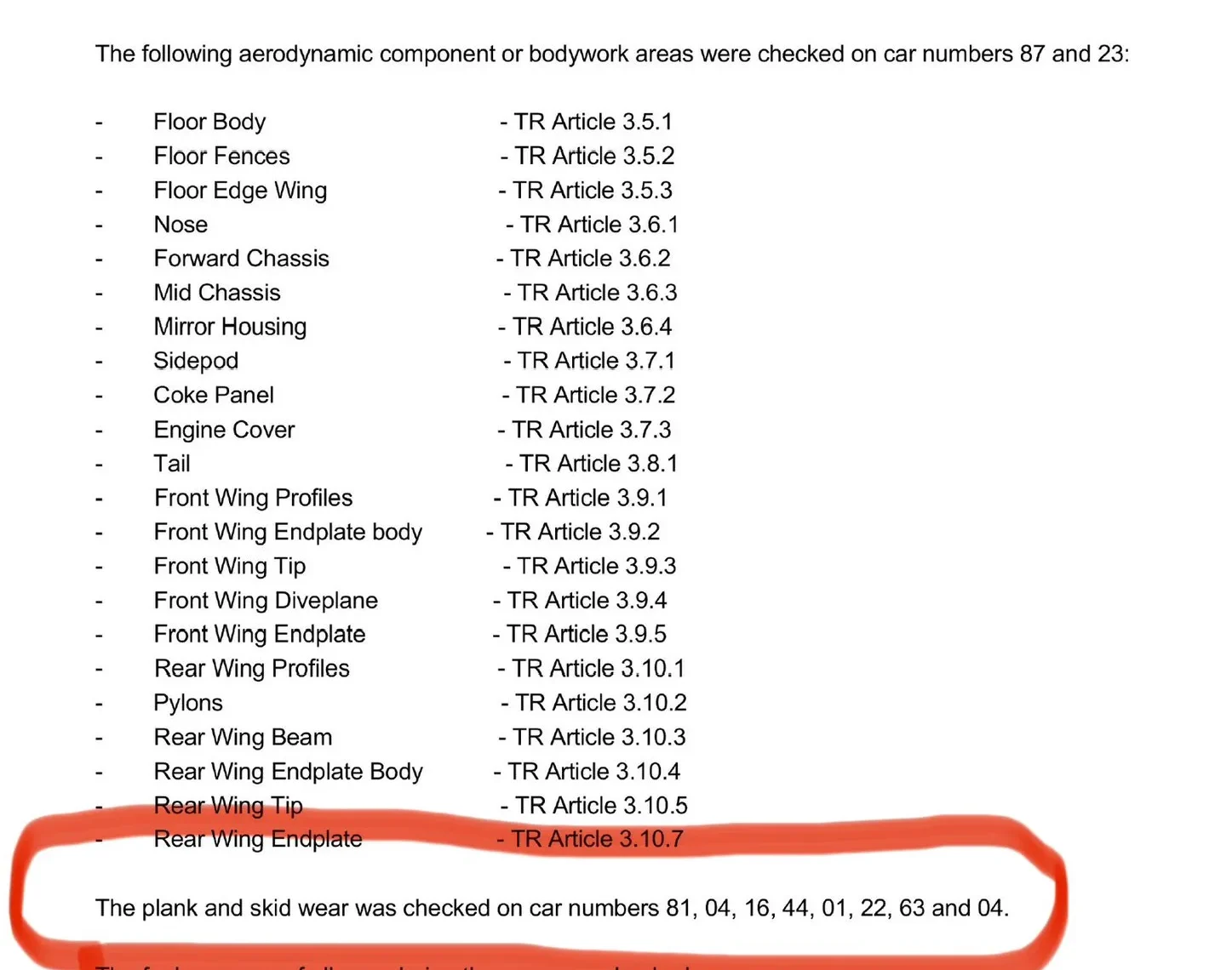 Come fatto notare da Roberto Cecere, giornalista di FUnoAnalisiTecnica, le due Ferrari sono state nuovamente sottoposte ai controlli della Federazione. Per fortuna tutto è risultato regolare sia per quanto riguarda l’usura del pattino che il peso minimo. Ecco cosa recita il comunicato della FIA: “Il plank e lo skid hanno subito controlli sulle auto con il numero 81,4,16,44,1,22,63″. In ordine stiamo parlando delle due Mclaren, le due Ferrari, le due Red Bull e la Mercedes di George Russell.