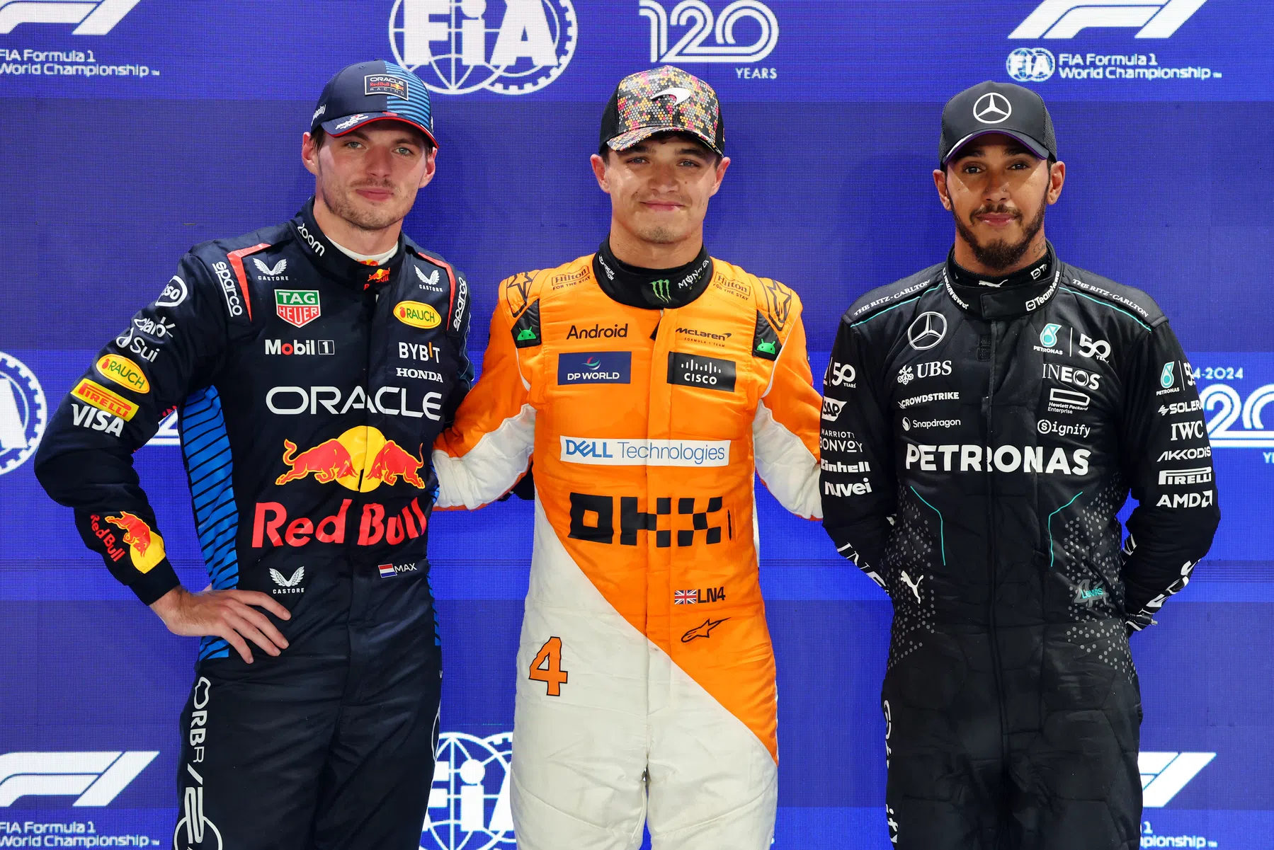 Max Verstappen, Lando Norris e Lewis Hamilton – foto: XPB Images