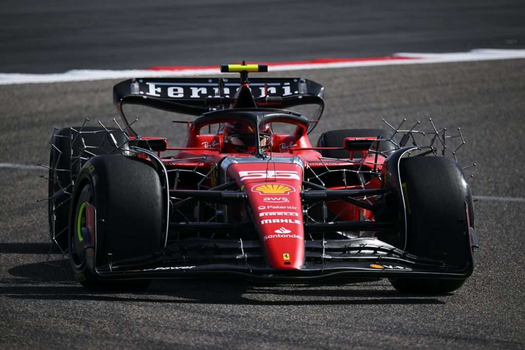 Sainz in pista con i rastrelli per delle prove aerodinamiche – Foto: Scuderia Ferrari