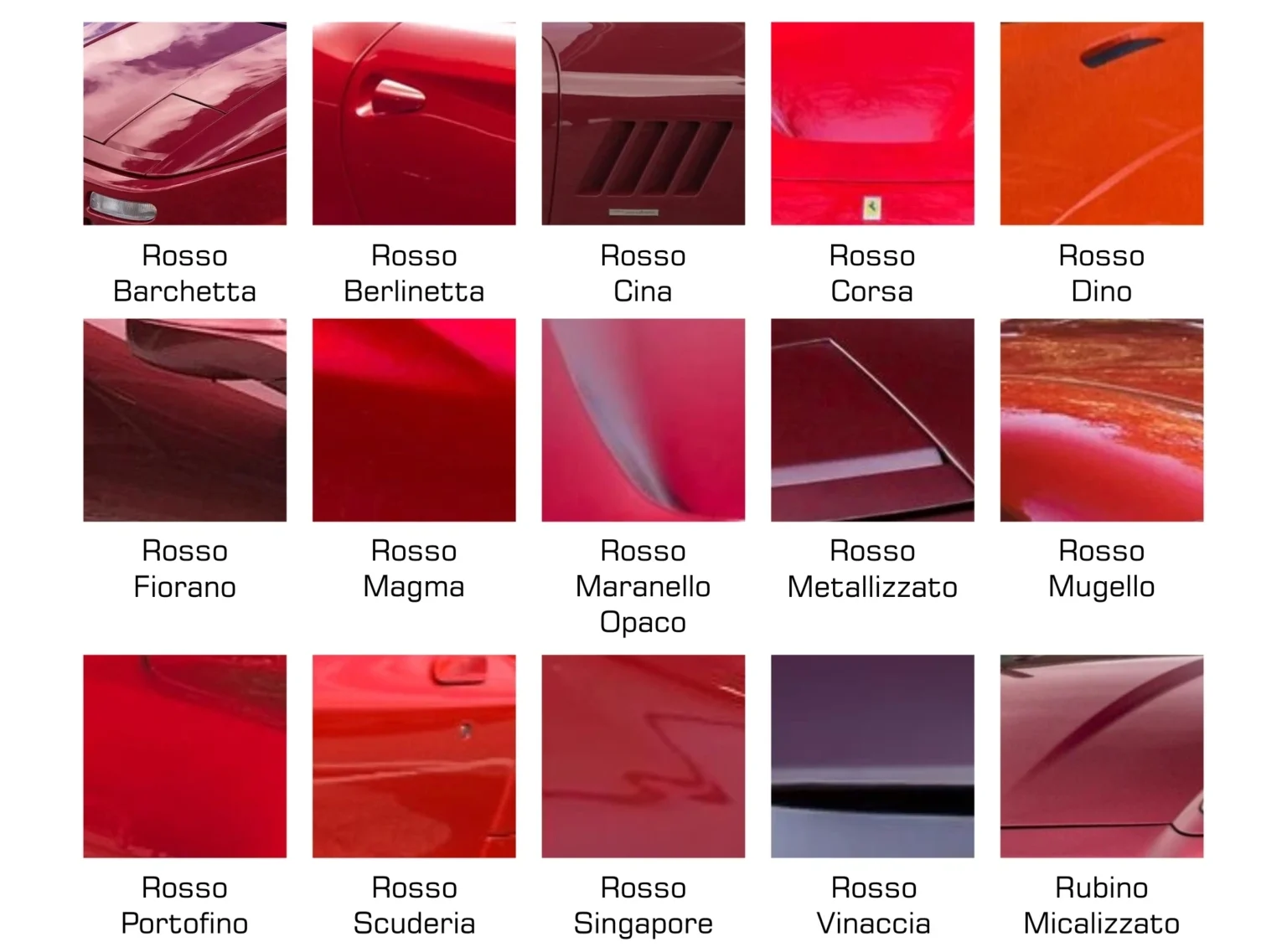 Sappiamo che nella storia del Cavallino Rampante, il colore rosso ha avuto molteplici versioni che hanno tutte un nome ben specifico.